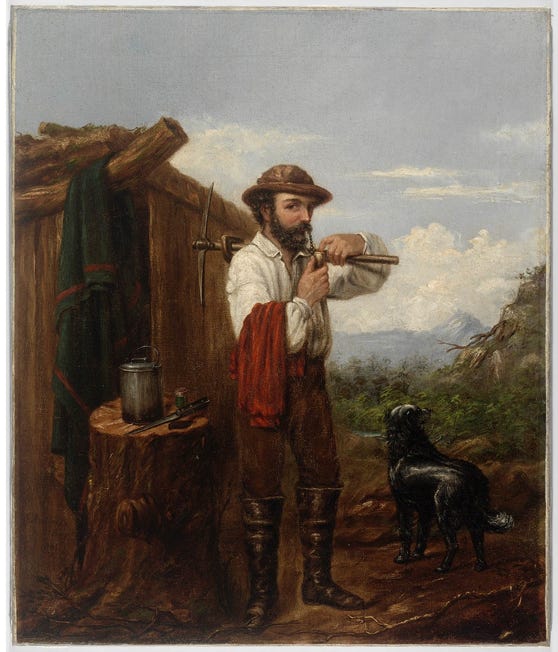 An Australian bushman, or goldminer wearing a a cabbage tree hat. 1861 oil painting by J. Anderson
