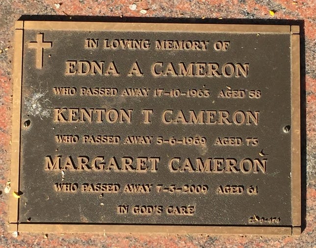 Margaret Cameron, my father’s cousin, was seven years older than I am. She was the only child of grandma Bernadine’s sister, Edna. As children, when our family came in from Cunnamulla and visited grandma’s house at Coorparoo, we often had a visit from Margaret. Of all the members of the Grant branch of the family that I knew, she was by far the youngest. She was kind, and heaps of fun. I always loved seeing her.