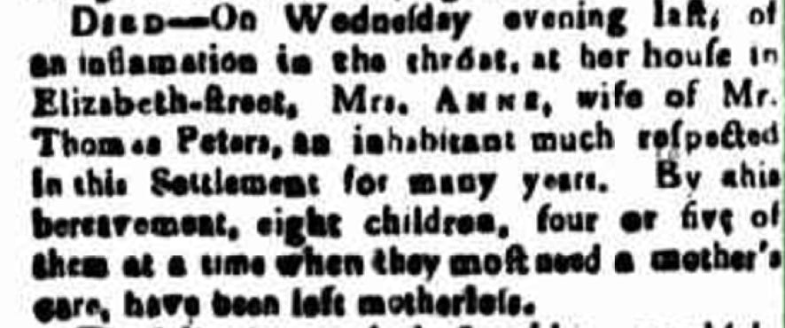 Ann Peters 1816–1830 (She is deceased by the time Mary Ann marries in 1832.)