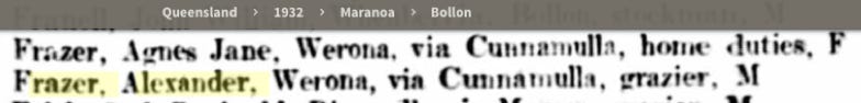 In August 1936 my grandfather Alexander William Frazer, (always known as “Sonny”), died in Barcaldine. He was Alexander’s eldest son.