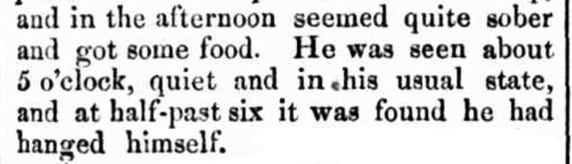 The accounts from the Mount Alexander Mail, of my great great great grandfather’s death by suicide, were also circulated in The Age (Melbourne, Vic.) Wed 7 Apr 1858 Page 6 and The Argus (Melbourne, Vic.) Tue 6 Apr 1858 Page 6.