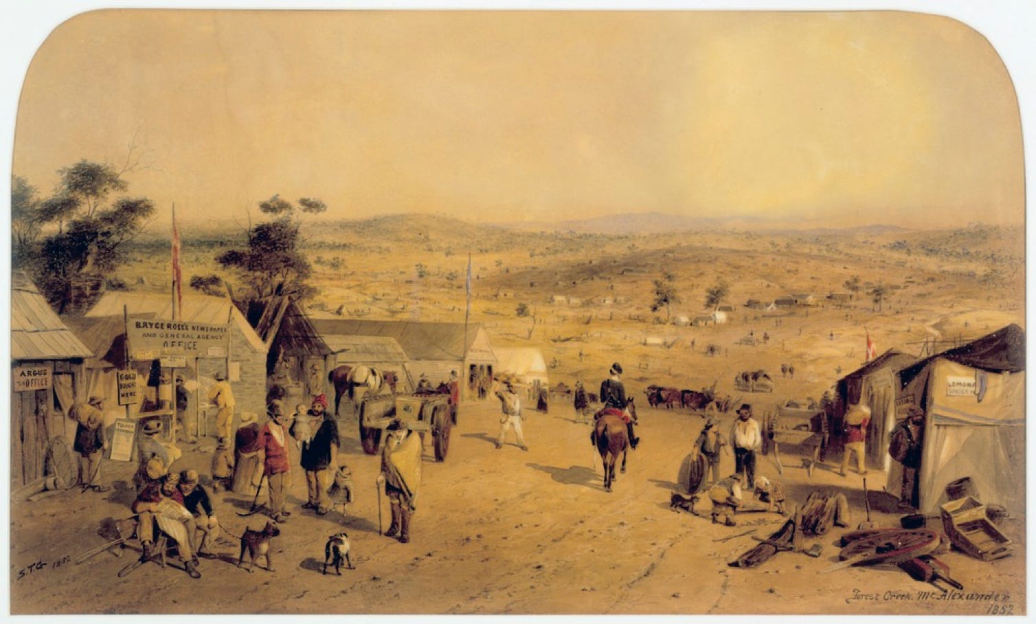 Gold diggings in Victoria, by Edwin Stocqueler, 1854 via Wikimedia Commons