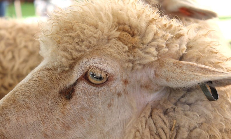 Apart from shearing the sheep, there is a need for crutching them to prevent them getting flyblown. Crutching removes the wool from around the tail and between the rear legs of a sheep. When crutching is being done the sheep are often given a ‘wigging’ as well. Wigging removes wool from the head of sheep to prevent the wool from covering the sheep's eyes and making them "wool blind”.