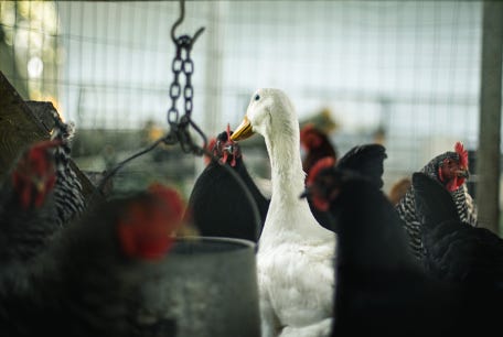 The population of chooks was from time to time forced to cohabitate with geese that the humans had decided to acquire. These times of inter-poultry relations had their good and bad side.
