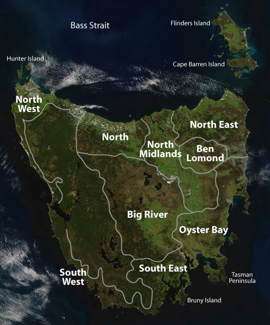 Map of Tasmanian Tribes at the time of first European contact. Based on data from Lyndall Ryan, The Aboriginal Tasmanians, Allen & Unwin, 1996, Martyman at the English language Wikipedia http://www.gnu.org/copyleft/fdl.html