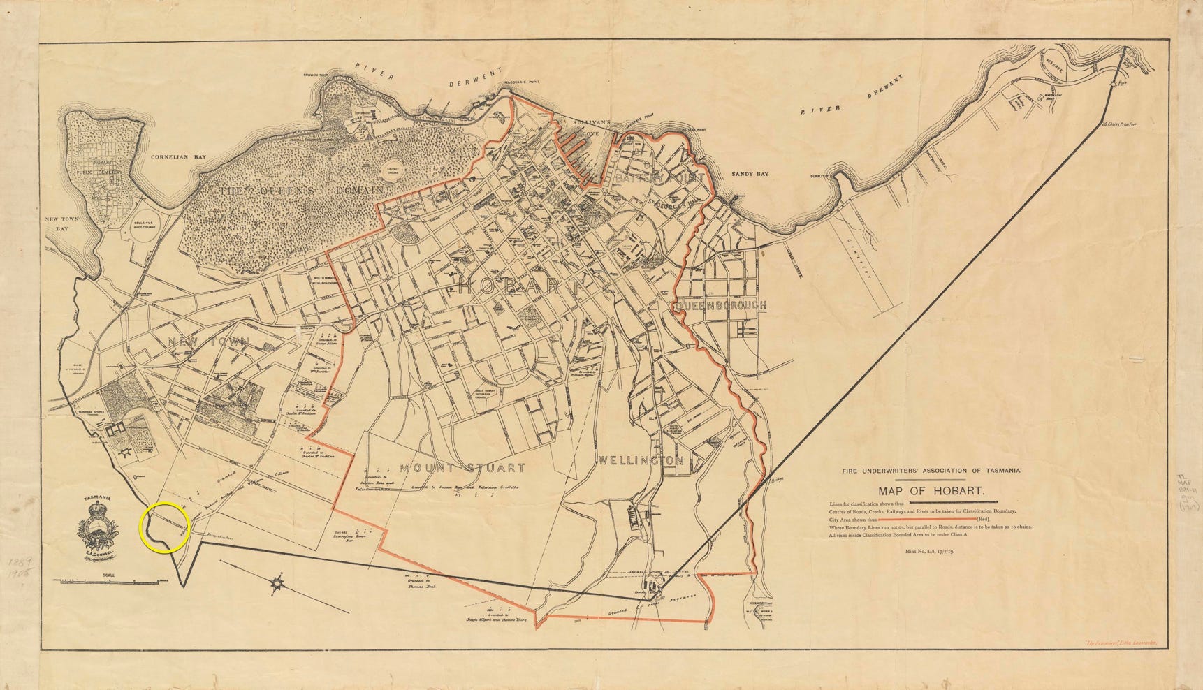 via LINC Tasmania. Map of Hobart / Fire Underwriters' Association of Tasmania TAHO https://stors.tas.gov.au/AUTAS001139592638j2k