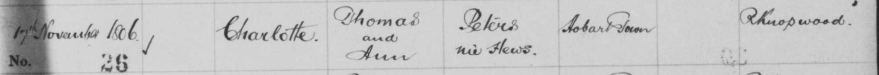 The records show that the Peters’ 3rd daughter, Charlotte, was born during this very harsh time. She was baptised on 17th November 1806.
