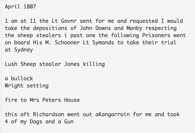 LEFT: 1. & 2. https://eprints.utas.edu.au/9500/1/rs_12_Reverend_Robert_Knopwood_diary_1805_1808.pdf