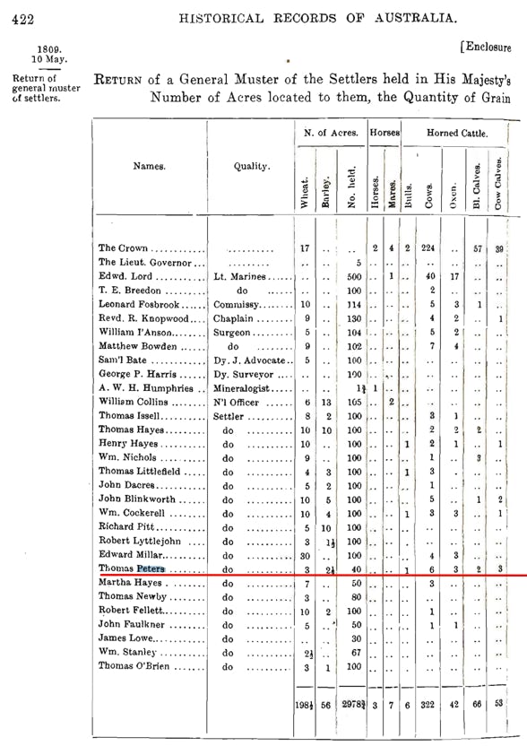 39. RESEARCH Part B - 1817 Hobart Town & York Plains: Thomas Peters receives a Land Grant