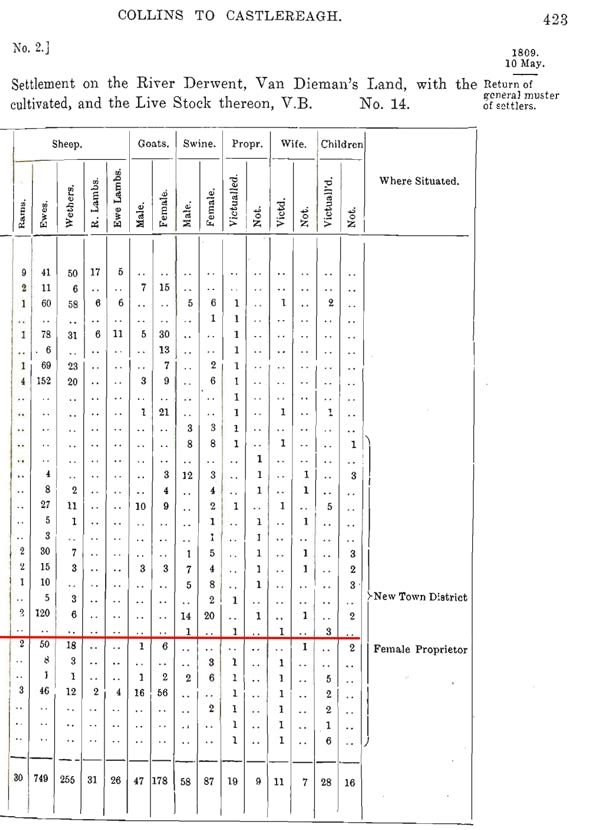 34. RESEARCH Part B - 1805 Hobart Town: Mary Peters receives a Land Grant on New Town Rivulet