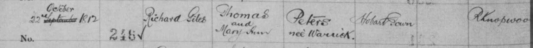 The records show that the Peters’ 6th child, their only son, Richard Giles, was born abt. 1812. He was baptised on 22nd October 1812.