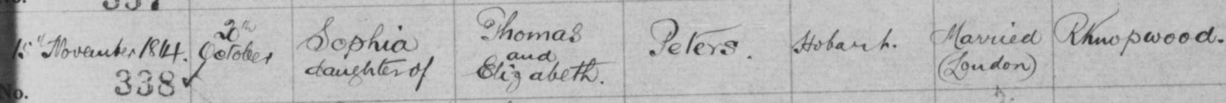 The records show that the Peters’ 7th child, Sophia Matilda, was born 20 Oct 1814. She was baptised in November 1814.