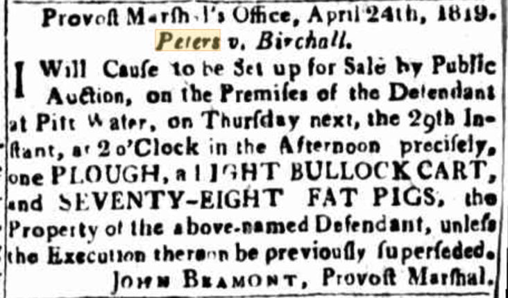 44. RESEARCH Part B - 1818 Hobart: A court case, a house for sale. & Elizabeth marries George Armytage