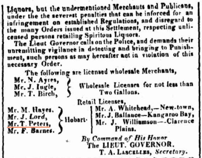 39. RESEARCH Part B - 1817 Hobart Town & York Plains: Thomas Peters receives a Land Grant