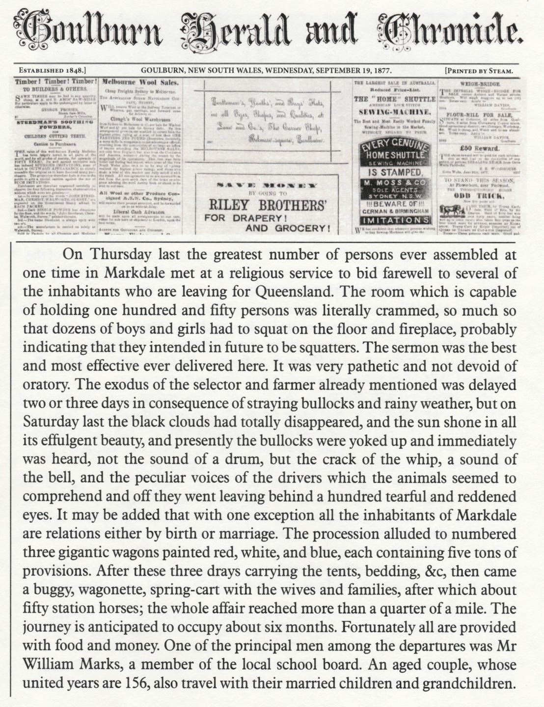 The Frasers & Marks families who travelled from Binda to Qld between Sept. 1877 and July 1878