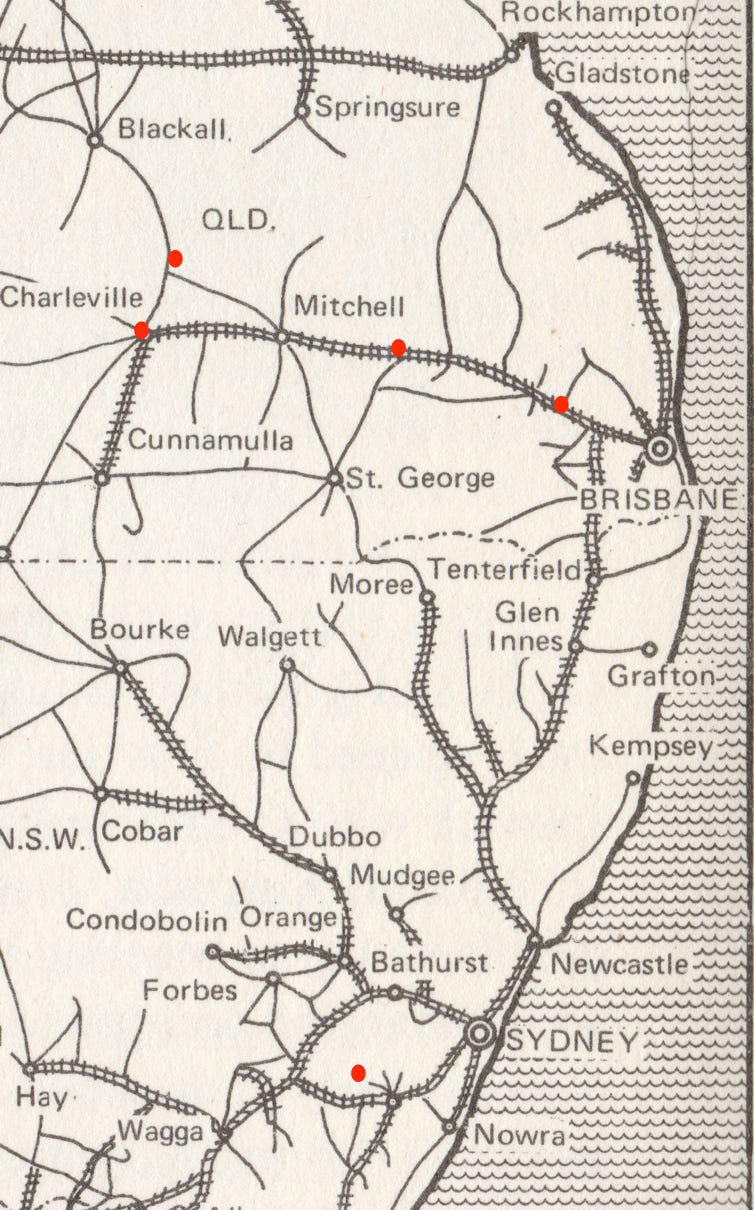 We know that many of the country towns that they passed through would have been formed on droving and coach routes, on river crossings and on railway lines. By 1870, Cobb & Co. coach routes crisscrossed Victoria, New South Wales and Queensland.