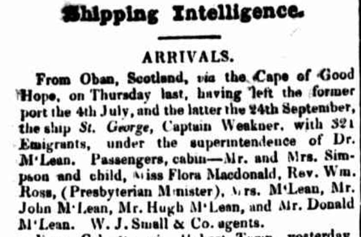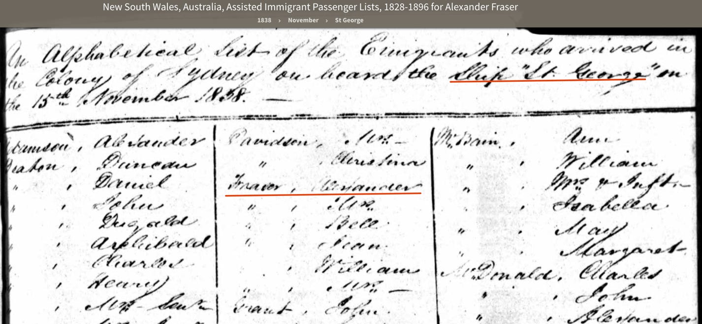 The 1838 St George voyage of Alexander Fraser and Margaret Fraser (nee McBean) & children