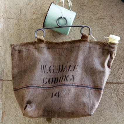 …”If you were travelling, you’d tie the water bag to the front of your bumper bar, full of water, and the evaporative effect of the air running over the canvas would cool down the water inside. You wouldn’t put in inside the car because it would drip. They didn’t lose much water, but they did become wet on the outside - that was the idea.”