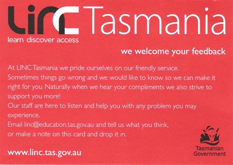 LINC Tasmania brings together State Library of Tasmania, Tasmanian Archive & Heritage Office, Adult Education (LearnXpress) and Online Access Centres.