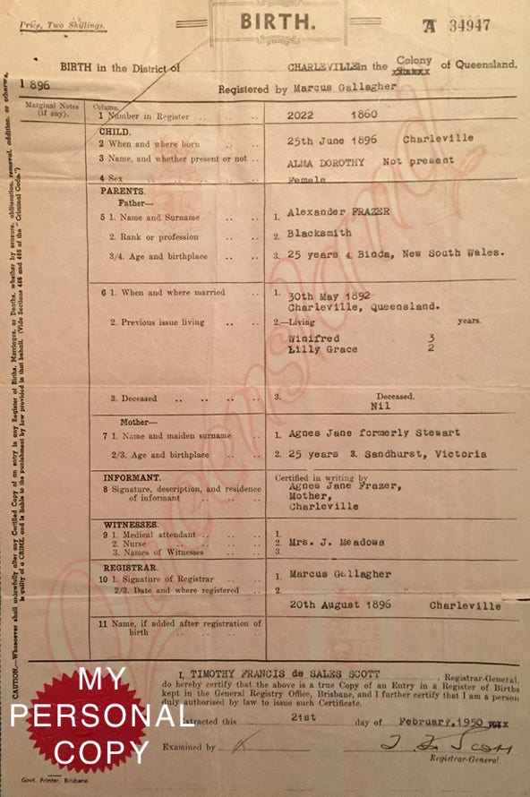 As children we had always been told that a quick indicator of whether or not we were related to other Frazer families in the Cunnamulla and Charleville area was the spelling of the surname. We were told that our relations always spelt their name with a ‘Z’ not an ’S’. Oh what a red herring this information turned out to be!