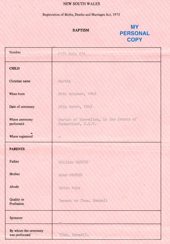 My great aunt, Alma Dorothy Winter (nee Frazer) outlived her siblings. She was almost 87 when she passed away in 1983. In the following year we ordered several birth certificates based on the information contained in Alma’s. The birth and baptism certificates supplied us with some names we were not familiar with: Alma’s grandmother, Martha Frazer (nee Marks); both her great grandmothers, Margaret Frazer, and Ann Markes; and her great grandfather, William Markes.